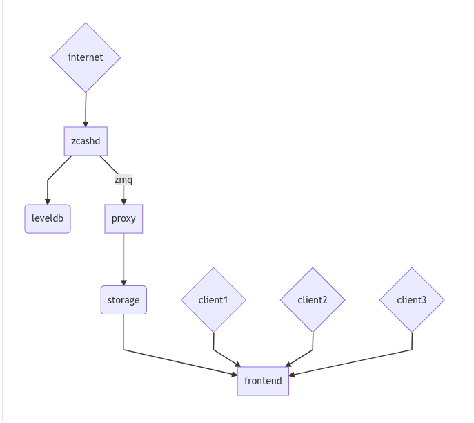 The proxy's purpose is to provide a scalable and bandwidth-efficient interface between a Zcash node and any number of light clients. It accomplishes this by parsing a blockwise stream of transactions from the node and converting them into the compact format described above.